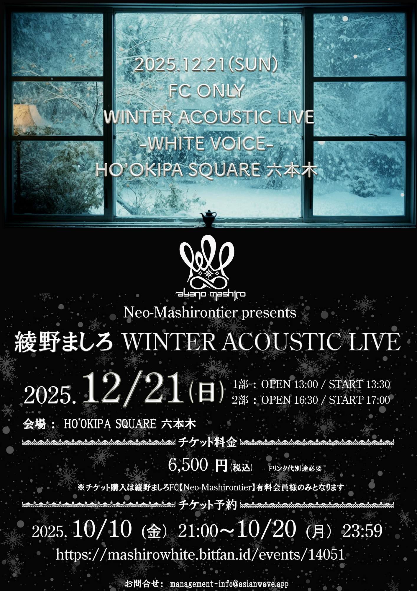 2025/12/21 綾野ましろ WINTER ACOUSTIC LIVE -WHITE VOICE-開催決定!!