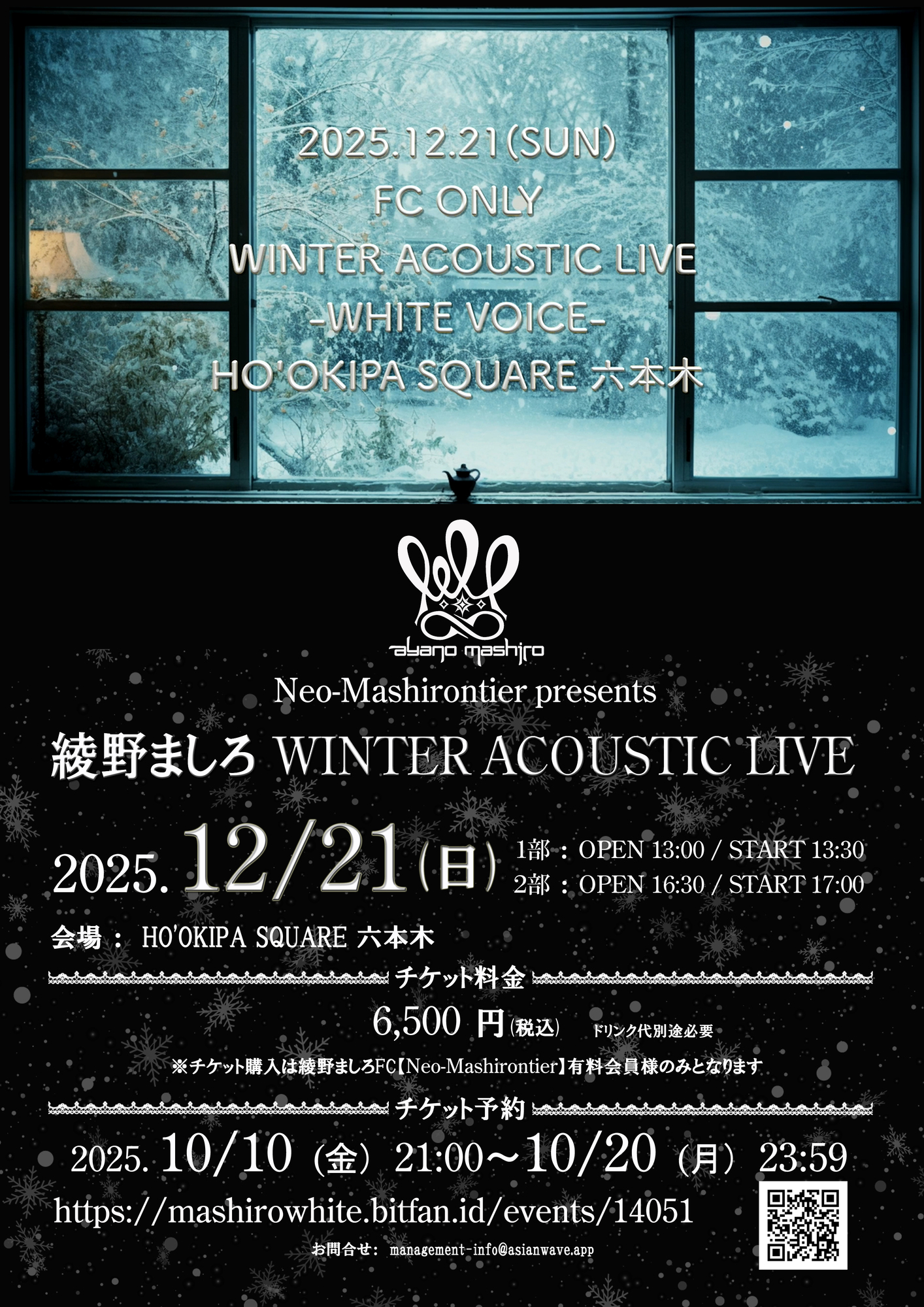 FC ONLY 綾野ましろ WINTER ACOUSTIC LIVE -WHITE VOICE-開催